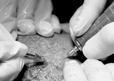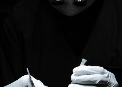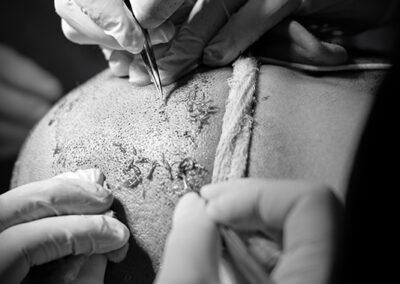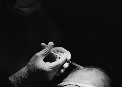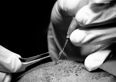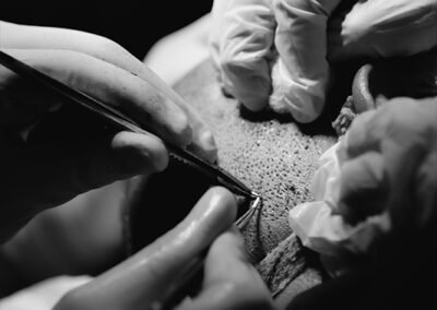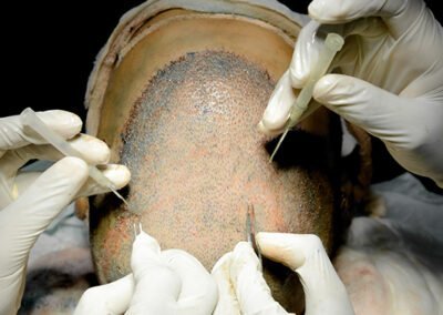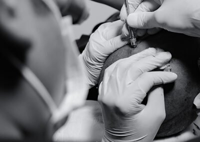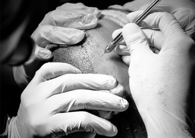 Have you ever wondered what a hair transplant surgery looks like? Take a look at some photos from our clinic of the transplant procedure to gain a better understanding. Here we can see our surgeons doing graft placement using QHT technique and Dense Hair Implantation technique